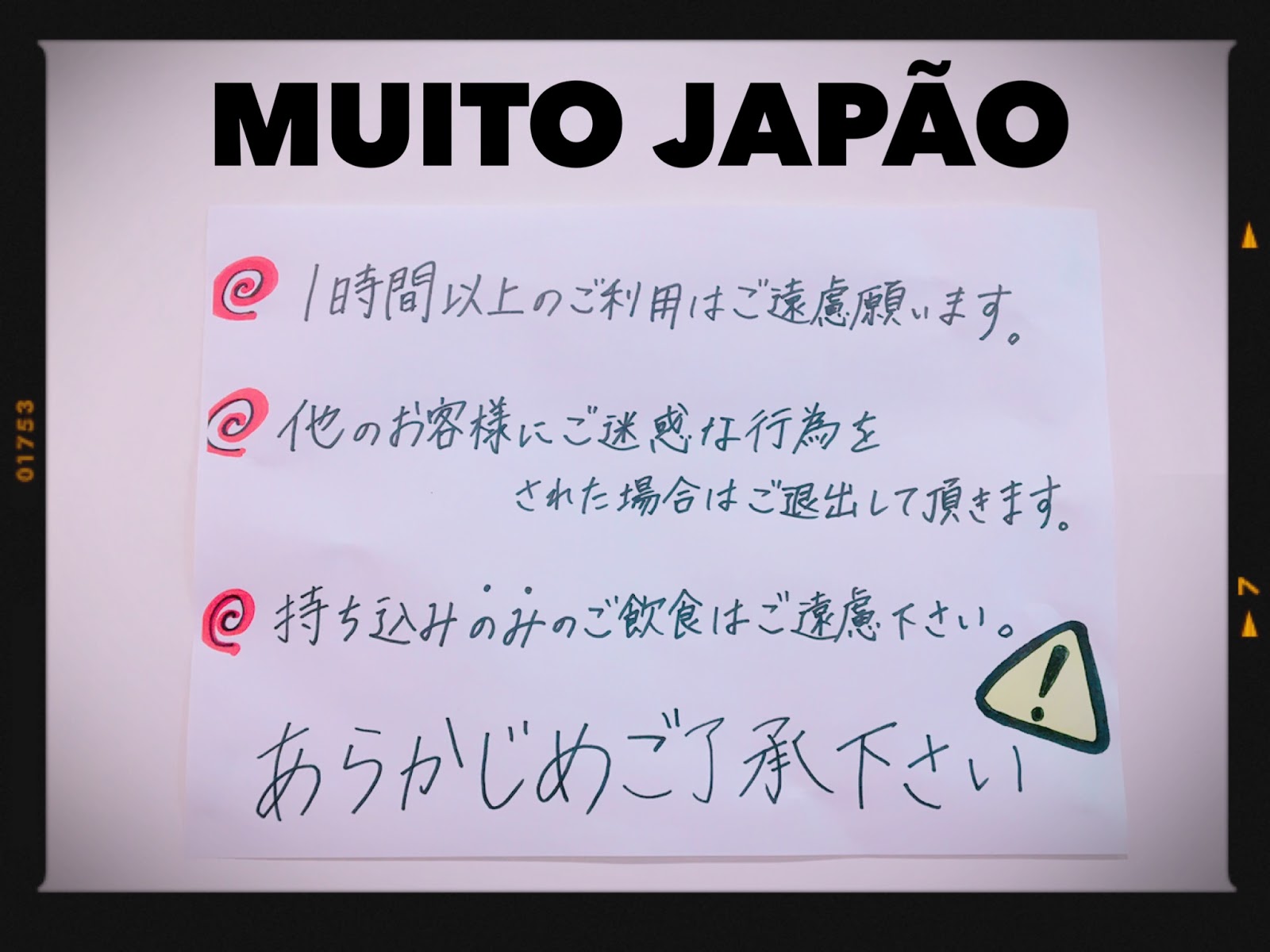 O simpático cartaz está em todas as paredes e diz mais ou menos assim: Prezado Cliente, Obrigado por utilizar a Family Mart. Para que mais pessoas possam utilizar o espaço que reservamos para relaxar, pedimos que sigam as seguintes regras: